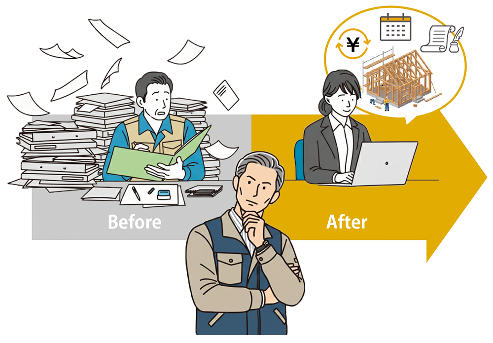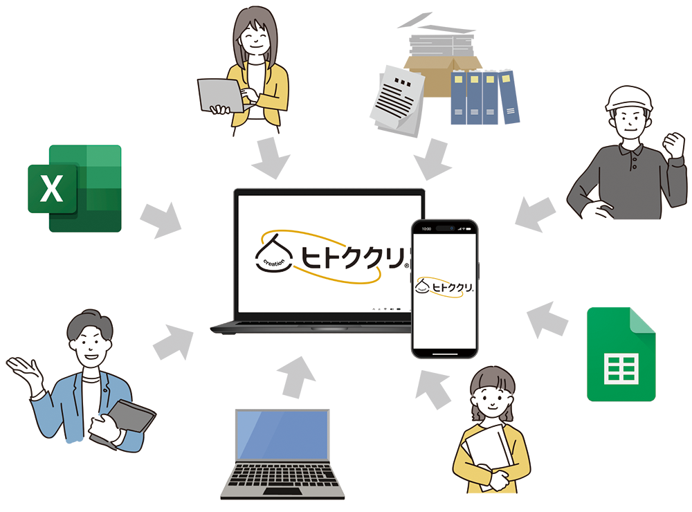 情報がバラバラ よくあるお困りごと お客様・現場、あらゆる情報がバラバラで手間が多い こんなことありませんか? ベテラン退職と教育不足で、新人が育たず業務が停滞している。 担当者以外お客様の情報がわからない、今のやり方でいいの悩んでいる。 部署ごとで異なるシステムを使用しているため情報の連携ができていない。 紙やExcelベースで情報を管理していて最新情報がどれかわからない。 コピー&ペースト作業が多い。 解決方法その1 「うまくいく流れ」を見える化する 貴社の「うまくいく流れ」をタスクとして整理し、業務フローとして構築・見える化します。 これにより、新入社員は自ら次に取り組むべきタスクを把握し、主体的に行動できるようになります。 先輩社員は定期的に業務フローを確認し、進捗状況を把握しながら必要なアドバイスを行います。 業務フローは一度作って終わりではなく、社員全員で確認し、継続的に改善していくことができます。 解決方法その2 今までのやり方を見直してシステムに落とし込む 成長したいと感じたときこそ、やり方を見直し刷新する絶好のタイミングです。ヒトククリでしたら、導入に合わせて、私どもも業務フローの構築をしっかりとサポートいたします。 従来のやり方で培われた大切な要素は活かしつつ、貴社の「うまくいく流れ」、いわゆる“勝ちパターン”を整理・構築し、社員全員が共有できる形で見える化していきましょう。 解決方法その3 部署ごと、社員ごとで管理していたものを一つのシステムで管理 Excelや紙、口頭などバラバラに存在していた情報を集約。お客様との過去のやり取り・契約・施工・アフター履歴など、すべての情報をヒトククリで把握できます。 これにより、担当者変更や引き継ぎ時のロスが大幅に減少します。 お困りごと別 情報がバラバラ お金の出入りがわからない ミス・ロスが起こる ヒトククリの主な機能 ヒトククリ活用コラム 営業工務店の業務改善、Excelでできること・できないこと2026年2月24日営業DX化したのに残業時間が減らない5つの理由2026年2月7日営業IT化とDX化は違う!2026年1月30日導入事例一目で業務内容や進捗状況が把握できる|ONE’S STYLE NISHIKAWA2025年11月9日導入事例工務店の業務効率化システムは もう、一つでいい|シュウハウス工業2025年10月17日