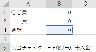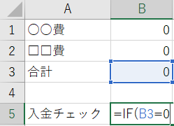 - チェックしたいセル(B3)を指定し「0かそれ以外か」を判別する式【 =0 】を付ける(条件式)